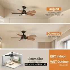 TOBILI 52-inch Ceiling Fan With Light,3 Light Walnut Wood Blades,Reversible For Living Room