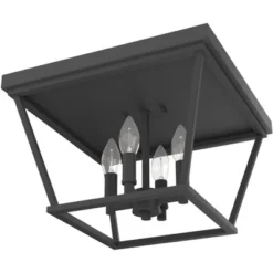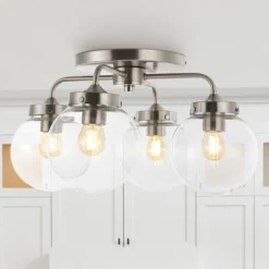 18″ 4-Light Piper Farmhouse Rustic Iron/Glass LED Semi Flush Mount Nickel/Clear – JONATHAN Y