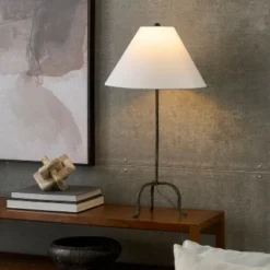 Nourison 22″ Black Modern Tiered Ceramic Table Lamp With Straw Shade