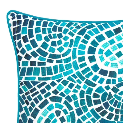 Bring the New York Botanical Garden into your home with the Mosaic Indoor & Outdoor Throw Pillow. Inspired by historical images found in the rare books room at the Botanical Garden, this lovely mosaic tile design in rich blue tones is accented with detailed embroidery for a beautiful decorative touch. High-quality fabric is stain resistant and fade resistant to withstand the elements of the outdoors year after year. Five percent of all proceeds help support the conservation and sustainability efforts of the NYBG. 100% Polyester. Features hidden zipper. Can be used indoors or outdoors. Easy spot clean. Decorative pillow measures 20 x 20.