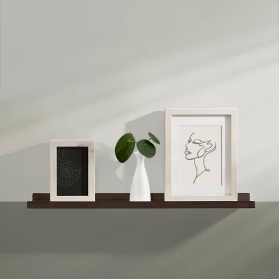 The Espresso Dolle Border Floating Ledge Wall Shelf is the perfect shelf for picture frames or any other decoration. The Border ledge shelf is easily fixed to the wall and offers sufficient space for smaller objects such as vases or spices. This shelf ledge is hand painted in matte white finish and is the ideal solution to using vertical space to decorate your home, office, bathroom or study.