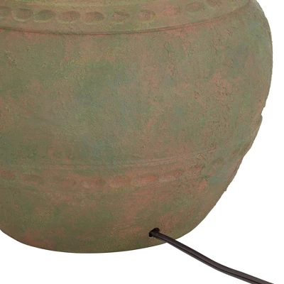 - Musk green finish base. Tarnished, rustic detailing. Jar-shaped profile. Cast resin construction.