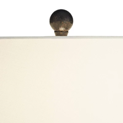 Add a bright accent to your bedroom or living room lighting with the Las Cruces table lamp. From the 360 Lighting brand, the lamp has a classic jar profile with decorative handles at the top. The base comes in a rustic black finish, and is topped by a flared shade in a white fabric.