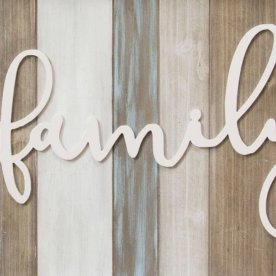 Accessorize your wall with the Stratton Home Decor Rustic ‘family” Wood Wall Decor. This item features distressed white wood shaped into the word Family on a multi colored wood planked background. Add to a gallery wall for a touch of charm. It measures 20″ W X 1 inch D X 16″ H. Comes ready to hang. Item is handmade and Painted by skilled artisans. Product may have some variances in comparison to photo shown.