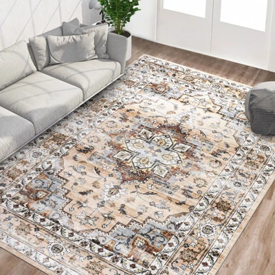 - [Stylish Vintage Design]: Add a touch of elegance to any room with our boho washable area rug. Its vintage distressed design complements a variety of decor styles, enhancing spaces like the living room, dining room, bedroom, or home office. This oriental-inspired rug is a versatile and stylish addition to any home.