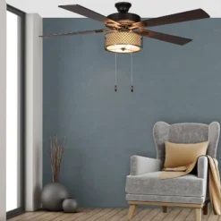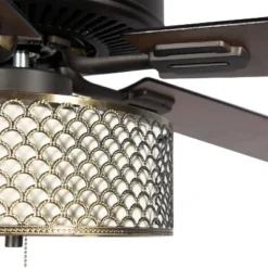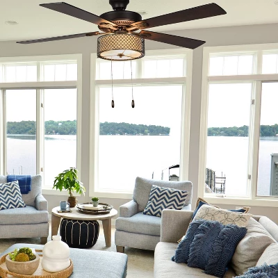 For a ceiling fixture that’s equal parts eye-catching and functional, the Bronze Wave 5-Blade LED Ceiling Fan from River of Goods is sure to hit the mark. This ceiling fan has a clean, sleek look, with a metal mesh shade on a metal fixture. The body of the fan has scalloped detailing that adds a little extra dimension and lets light glow through the shade below. The fan comes in a dark shade of bronze that makes it easy as can be to coordinate with any of your existing paint or decor colors. You’ll appreciate the convenience of three speeds and a reversible motor that let you circulate hot or cold air exactly as needed, along with two light settings to also adjust the glow in your room. The fan even features five reversible blades that can switch between two wood shades — barnwood and light driftwood — so you can change up the look of the ceiling fan without having to get a whole new fixture.