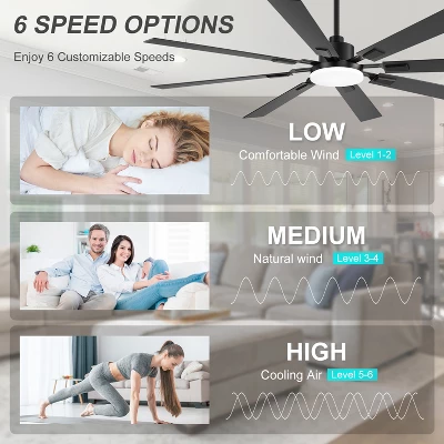 - Equipped with a high-performance DC motor, this ceiling fan offers 6 adjustable wind speeds—from gentle comfort breeze to strong airflow—delivering a personalized cooling experience to suit any preference.