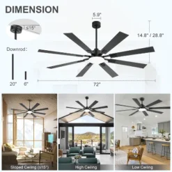 - Versatile Installation Options – Comes with 6-inch & 20-inch downrods to suit different ceiling heights, making it ideal for standard to high ceilings.