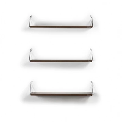 Altai Floating Wall Decor Wall Mounted Rustic Decorative Hanging Metal Bracket Triple Shelfs for Books, Walnut/Chrome