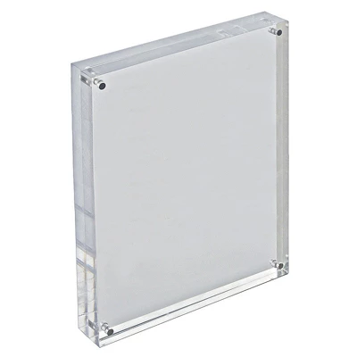 The Perfect Gift: Looking for something classy and special, give the perfect gift by inserting a family photo, award certificate, concert ticket, gift card, special poem, or graphic. These Acrylic frames will surely delight any recipient during the holiday season, smiles all around for everyone! You will surely impress with these elegant photo block frames. These sleek and modern Acrylic Block Frames gives your photo or graphic an upscale look. Thick and Sturdy: each side of the acrylic blocks are ¾ thick making the total thickness of the block frame 1.5 thick. The clear polished edges give these magnetic block frames a high end finish with a touch of fancy. The crystal clear high quality acrylic photo holder has 4 magnets on each corner to hold the acrylic together. Your graphic or picture fits securely inside without moving or sliding. Easy to use, simply pull apart the blocks and insert picture or graphic and then close, your photo will be held securely and also easy to switch out when needed. The photo holders can be used vertically or horizontally and sits on its own on a tabletop, shelf, counter, or mantel. The transparent acrylic compliments any décor. The solid acrylic block frames can be used in boutiques, museums, trade shows, hotel lobbies, restaurants, retail stores, schools, at work or at home. These chic picture holders will look great on any desk, mantel, or retail counter. Give the perfect gift by inserting a family photo, award certificate, concert ticket, business card, gift card, special poem, or bridesmaid gift. Great for weddings or special events for table numbers or centerpieces. Other uses include: name plate, photo frame, branding or advertising. Sold in multiples of 1. Sold in Multiples of: 1 Material: Acrylic Orientation: Landscape/Portrait Measurement: 8.5 x 11 Material Thickness: Two blocks of acrylic 0.75 thick Color: Clear