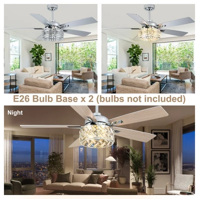 Transform your home into a stylish oasis with the Bella Depot 52″ Modern Crystal Ceiling Fan. This stunning piece combines elegance and functionality, making it the perfect addition to any room. With its four beautifully crafted wooden blades and a sleek metal frame, this fan not only cools your space but also enhances your d¨¦cor. The eye-catching crystal light shade adds a touch of glamour, while the optional silver chrome finish gives it a contemporary edge. Enjoy customizable comfort with six speed settings and a reversible motor, allowing you to create the perfect ambiance year-round. Plus, the convenient timer function ensures you can set it and forget it, making your life easier. Designed for easy installation, this fan is compatible with most home styles and requires just two E26 light bulbs to shine bright. Elevate your living space with the Bella Depot Ceiling Fan¡ªwhere modern design meets practicality. Don¡¯t miss out on the chance to add a touch of sophistication to your home!