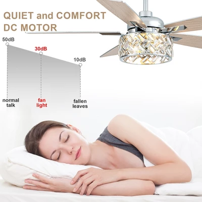 - Elegant Design: Features four wooden blades and a sleek metal frame, complemented by a stunning crystal light shade.