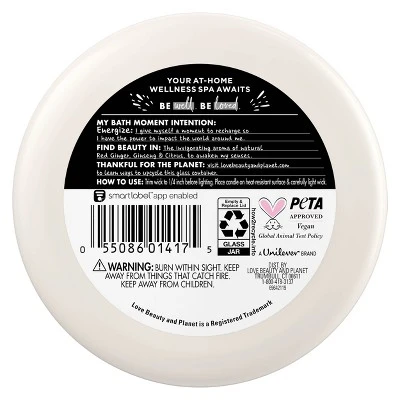 An energizing blend of red ginger, ginseng and citrus, our invigorating Love & Rest scented vegan candle is made with ethically sourced oils and extracts for a restorative and energizing at-home spa experience. Infused with 3x the essential oils and made with a soy wax blend, this scented candle provides a clean and consistent burn time of up to 30 hours. Our scented candles are also PETA approved and vegan, cruelty-free, dye-free and packaged in a recyclable glass jar. Love Beauty and Planet is committed to small acts of love that make you and our planet a little more beautiful, every day. What’s the best way to use this fragrant, feel-good candle? Trim the wick to 1/4 inch before lighting. Place the candle on a heat-resistance surface, carefully light the wick, and then let the fragrance fill the room! A small act of love for you and the planet. Love this scent? Explore our whole range of Beloved by Love Beauty and Planet Scented Candles, infused with signature ingredients. This scented candle is best paired with the complete Love & Energize collection for an immersive sensory experience for bath and body. We are starting a beautiful movement. Are you in?
