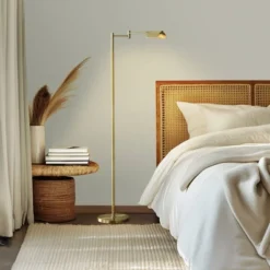 Brighten up any room with the Brightech Leaf LED Task Floor Lamp. This 53-inch tall lamp comes in three colors (black, brass, and silver) and is perfect for a variety of decors, including contemporary, industrial, urban, traditional, and rustic styles. Its slim design and adjustable swingarm make it ideal for reading, sewing, and working. Plus, it comes with a 3-way touch-operated dimmer switch (offering 100%, 50%, and 25% illumination) and a 12.5 Watt power-saving LED light bulb, rated to last 20,000 hours (20 years with normal use). Enjoy 3,000K of warm white LED technology generating 1150 lumens, outperforming halogen, CFL, or incandescent bulbs. Get the perfect combination of form and function with the Brightech Leaf LED task lamp.