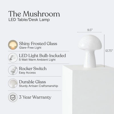 Elevate your space with the Brightech Mushroom Table Lamp, a unique blend of minimalist design and elegance. Perfectly poised on desks, side tables, or bedside, this lamp seamlessly fits rustic, boho, contemporary, and eclectic décors. Its charming shape, complemented by the subtle twist in the glass, offers both function and style, ideal for reading or ambient lighting in dorms, offices, living rooms, and kids rooms. Unbox, plug-in, and let your room bloom! With zero assembly required and compatibility with wall switches and smart bulbs (sold seperatly), achieving your desired ambiance has never been easier. Integrated with a 5-watt LED bulb, it ensures longevity, lasting up to 20,000 hours, while saving up to 90% on electricity bills compared to traditional bulbs. Moreover, its cool touch assures safety. Trust in quality with Brightech’s 3-year warranty, solidifying the Mushroom Lamp as the blend of design, durability, and efficiency.