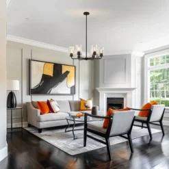 Elevate your home with our decorative hanging ceiling light, an ideal fixture for kitchens, dining rooms, and foyers. Crafted from durable, black-finished metal, this chandelier features a classic design with five gracefully extending arms that hold exposed bulbs, creating a striking focal point. The adjustable height, made possible by the included extension rods in various sizes, allows you to customize the look to fit your space perfectly. Additionally, the angle mount hardware included on the canopy ensures seamless installation on sloped ceilings, making this chandelier as functional as it is stylish.