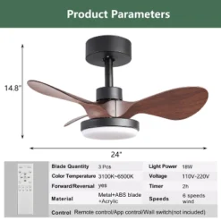 This 24-inch modern ceiling fan with 3 sleek propeller-style blades delivers strong, wide airflow while adding a clean, stylish look to your space. Ideal for bedrooms, dining rooms, kids’ rooms, studies, libraries, bars, and more, it combines practical function with decorative appeal. The energy-efficient DC motor operates quietly at under 35 dB and features a reversible mode to switch between cooling downdraft in summer and warming updraft in winter, helping circulate air evenly and reduce energy costs.Control is easy with the included remote or via app by scanning the QR code in the manual. Adjust 6 fan speeds, set 1/2/4-hour timers, change 3 color temperatures (warm/natural/cool white), dim lighting, activate night light mode, and control the fan and light separately. Note: This fan is not compatible with smart home systems like Alexa, Google Home, HomeKit, or Tuya.Built with high-quality ABS blades and durable metal housing, the fan features a pure copper motor for strong airflow and long-lasting performance. Installation is simple with detailed instructions and a step-by-step video guide. If you have any questions during setup or use, our support team is here to help.