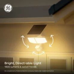 - Bright, Adjustable Light: 1,800 lumens–brighter than a 90-watt halogen floodlight–with swivel heads direct bright light where it’s needed and dusk-to-dawn sensor that automatically turns on the light at night