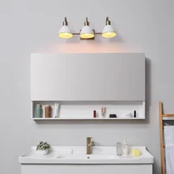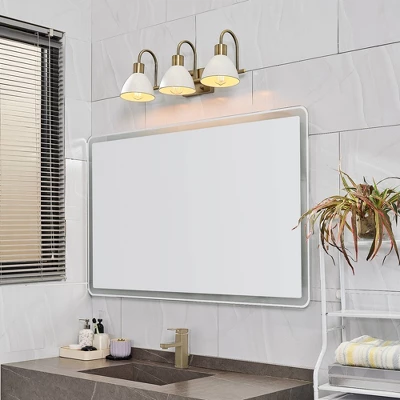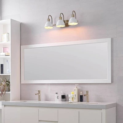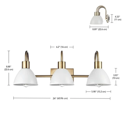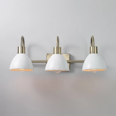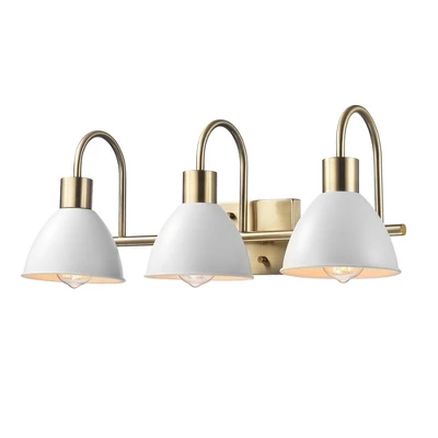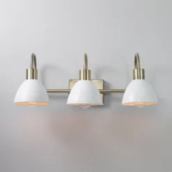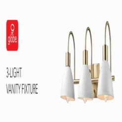 Globe Electric’s 3-Light Vanity Light brings a glamorous yet subtle element to any space. The matte white metal shades of the vanity light fixture offer a vintage feel while brass accents complete the look. Update and modernize your bathroom or powder room or add the 3-light vanity to your bedroom to create a stunning getting ready area. This light would even be ideal in a kitchen, dining room, or living room – the options are endless! Couple this with a compatible dimmer switch to create the perfect atmosphere for any mood you’re in (dimmer switch not included) and your vanity light will be the star of the room! The brighter the bulb you choose, the more light you’ll provide but remember, you can only use a maximum of 60-watts per socket!
