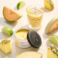 The Good Chemistry Lime and Sunshine Candle is an upbeat and optimistic vibe juiced with fresh energy. With notes of lime, melon, pineapple, and raspberries, the Refillable Glass Lime and Sunshine Scented Candle is designed to refill again and again for a consistent and delightful home fragrance.