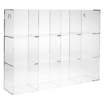 - 12 Square Compartments: Our 3 tier wall mounted acrylic display shelves unit measures 15.5 x 11.5 x 3 inches; each slot size measures 3.3 x 3.3 x 2.9 inches