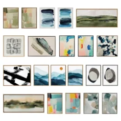- Modern Framed Canvas Wall Art: Abstract landscape art on framed high-quality gallery-wrapped canvas. Our premium high-tension canvas is stretched across a solid surface to resist sagging. Outside display dimensions are 40 inches by 18 inches by 1.6 inches