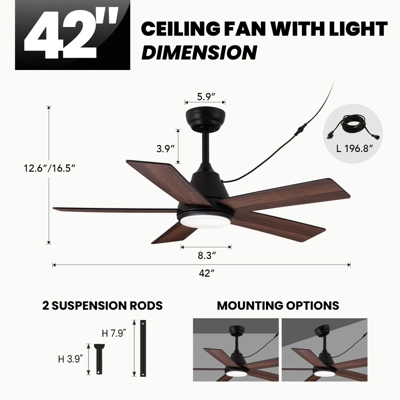 - DIMENSIONS: 42-inch ceiling fan includes 3.9″ and 7.9″ downrods. Compatible with sloped ceilings up to 15°. Includes 5-meter waterproof wiring for reliable operation.