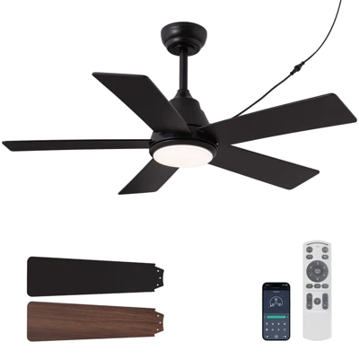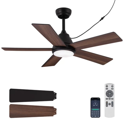 - CEILING FAN WITH REMOTE & APP:Control the fan and light easily via remote or app. Adjust 6-speed levels, reverse direction, select from three light color temperatures, and set timers (1/4/8 hours). Separate control of fan and light is available.