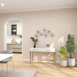 - •This metal wall art home decor has flower-shaped sculptures with center pistils