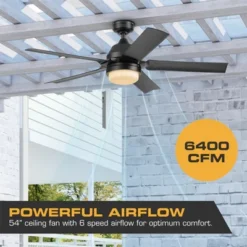 Add modern elegance and year-round comfort to any space with the Mule 54-Inch Outdoor Ceiling Fan with Light. Designed for both outdoor and indoor settings, this fan features a sleek matte black finish, 5 durable ABS blades, and a wet rating, making it perfect for patios, pergolas, porches, or indoor living areas. Engineered to handle the elements, the weather-resistant blades are built to withstand rain, moisture, and temperature fluctuations, delivering consistent performance in any environment.Equipped with a high-efficiency 6-speed DC motor, this fan offers whisper-quiet operation and energy-saving airflow. The reversible motor allows you to switch blade direction for optimal comfort, downward airflow in summer to cool, and upward in winter to redistribute warm air. Adjust speed and direction easily using the included remote control, which comes complete with a wall mount and batteries for convenience.The integrated LED light board enhances your space with customizable brightness and color temperature. Choose from a warm 2200K glow to a crisp 6500K daylight and dim from 10% to 100%, allowing you to set the perfect ambiance for any occasion.Whether you’re creating a cozy atmosphere indoors or a breezy retreat outdoors, the Mule 54-Inch Ceiling Fan delivers superior performance, smart features, and year-round style, all in one powerful, weather-ready package.