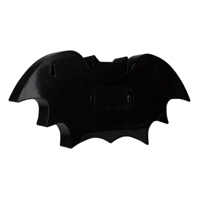 Add some light to your Halloween decor with this illuminated marquee sign. It features a spooky bat and will be sure to send a chill down your spine. Great for parties or use as a nightlight. Product Features:Illuminated by 11 LED lightsColor: warm white bulbsOne-sided designLED lights use up to 80% less energy Bulbs stay cool to the touchRequires (2) AA size batteries; not includedConvenient on/off switch on the backComes ready-to-hang with keyhole hooks on the backRecommended for indoor decorative use onlyDimensions: 4″H x 12″W x 1″DMaterial(s): plastic