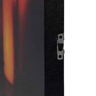 Halloween just isn’t the same without jack-o-lanterns. This canvas offers a new way to decorate, but still adds the warm glow of candles. Traditional Autumn colors, along with Fall leaves gives that unmistakable Halloween feel. Perfect for the curated holiday home.Features;Lighted jack-o-lanterns Halloween canvas wall artPre-lit with 10 LED lights Comes ready-to-hang with a hook on the back Convenient on/off switch on the side, battery pack on the backRequires (2) “AA” size batteries – not included Care should be used when inserting or removing batteriesRecommended for indoor use only Dimensions: 15.75″H x 23.5″W x .75″DMaterial(s): canvas/wood/MDF (medium-density fiberboard)Note:Item does not come with a battery cover – open design holds the batteries snugly