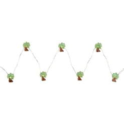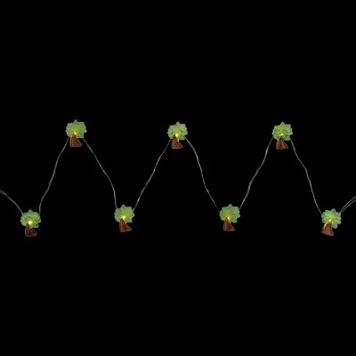 Brighten up your space with this 10-count set of palm tree lights, featuring LED warm white fairy lights for a soft, inviting glow. These battery-operated string lights are perfect for indoor or covered outdoor areas, adding a tropical touch wherever they hang. The palm tree light covers bring a fun, laid-back vibe to patios, bedrooms, or balconies. Great for everyday use, these fairy string lights offer flexible placement without the need for an outlet.Product Features:Color: warm white bulbs / silver wireNumber of bulbs on string: 10Palm tree light coversBulb size: micro fairyBulb type: LEDSpacing between each bulb: 4″Lighted length: 2.75’Total length: 3.75’Additional Product Features:LED lights 90% less energyStays cool to the touchNon-replaceable bulbsRecommended for indoor or covered outdoor useCannot connect multiple sets togetherRequires (2) AA batteries – not includedConvenient on/off switch on battery packMaterial(s): plastic/wire