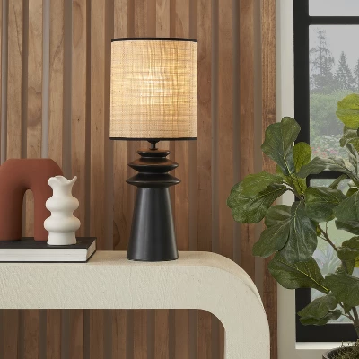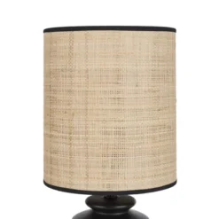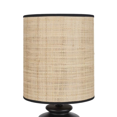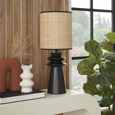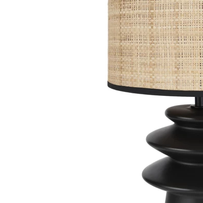 - Matte Black Ceramic & Textured Straw Tiered Table Lamp
