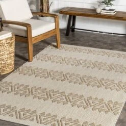 Style and design come together in this stunning area rug. This rug features a dynamic pattern giving your space a modern touch. It is sure to make a stunning statement whether you decide to place it inside or outside your home. This rug is built to last, resisting stain, fade, mold and mildew. The durable synthetic weave has an incredibly soft underfoot, perfect for any high traffic areas of the home. Indoor or outdoor, this pet-friendly and easy to clean area rug will elevate your space like no other.