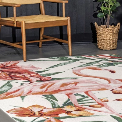 Get ready to turn heads with this floral flamingo indoor/outdoor area rug. Designed to stand up to the elements while adding a touch of charm to your surroundings whether you place this in your living room or on your patio. This floor covering pairs perfectly with any existing coastal or contemporary décor. Liven up your space with our easy to care for and pet-friendly area rugs.