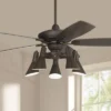 This modern industrial design 52 in. smart black ceiling fan adds a farmhouse statement and smart convenience to your home. 3 ABS Blades will stretch out and be put inside automatically when on/off, special design. The beveled tapered glass panels are arranged around a metal black-finished frame, 5-bulbs are required in total and included. Comes with a set smart remote control, but also supports Wi-Fi apps and Voice Control Technology (compatible with Alexa, Google Home Assistant and Siri) to offer more flexible operations.