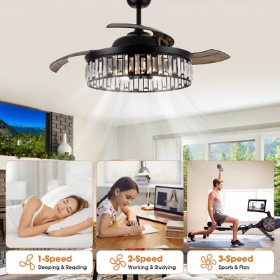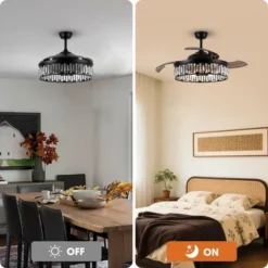 - Ceiling fan and chandelier fixture 2 in 1 in black finish