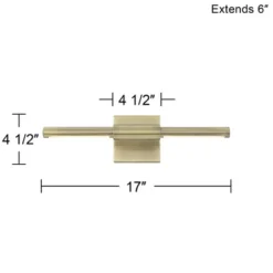 - 17″ wide x 4 1/2″ high. Extends 6″ from the wall. Backplate is 4 1/2″ wide x 4 1/2″ high. Weighs 2.2 lbs.