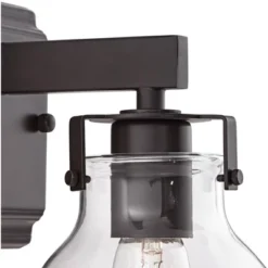 A classy contemporary design with a subtle industrial touch. From the Possini Euro Design line of home lighting, this single light wall sconce is sure to provide reliable illumination without sacrificing style. It features a gently curving glass shade with an open bottom, exposing the bulb inside. A handsome bronze finish covers the square backplate and accents the light.