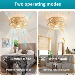 Brighten up your space with this white-rubbed gold metal frame ceiling fan light! This ceiling fan takes a high-quality white metal frame and hand sweeps it with a brush in varying shapes of gold to create a modern, minimalist look. Available in two forms, round and square, with high-grade ABS coated blades done in rubbed gold, with 4*E26 base bulbs (not included), you can emit soft and cozy light, creating a romantic vintage atmosphere and low-key luxury. Designed for year-round comfort, it offers two operating modes – summer mode (forward rotation for cooling airflow) and winter mode (reverse rotation to circulate warm air). The timer function on the remote control can automatically turn off the fan after 1/2/4/8/12 hours. Together with the powerful copper motor, it keeps the ceiling fan light running quickly and noiselessly, circulating fresh air and creating a quiet and comfortable lounge environment.