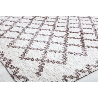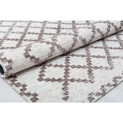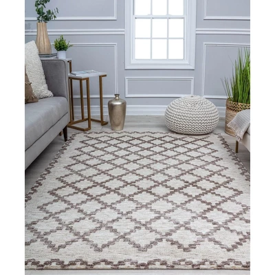 - Featuring a simple trellis design that is classic and inviting, this sophisticate rug design is the final piece you need to complete your space. This timeless masterpiece features a gorgeous neutral color palette of cream and ash brown. The uncomplicated coloration and design gives way to versatility, so you can coordinate with both warm and cool tones for an endless combination of furniture and décor styles. The thick polyester construction provides a durable and comfortable layer for daily foot traffic.