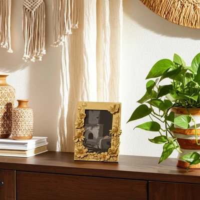 - BOHO-INSPIRED DESIGN – Elevate your space with this gold photo frame featuring intricate floral and butterfly details. Its bohemian charm adds a touch of elegance to any home, office, bedroom, or living room decor, making it a standout accent piece.