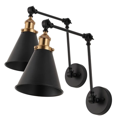 Finished in black, the metal body would suit any color palette. As this fixture must be hardwired, we recommend a professional electrician manage installation. Fixture can be dimmable with dimmable bulb (not included) and Electric Low Voltage dimmer (sold separately). Eco-friendly 4W LED bulb included. Takes 2 bulbs and compatible with TYPE “A” 40W or CFL 13W or LED 9W. Color Temperature: 2700K. CRI: 80. Before cleaning any lamp shade or fixture, disconnect the power source. Wipe with a soft, dry cloth. Avoid the use of chemicals and household cleaners as they may damage the finish.