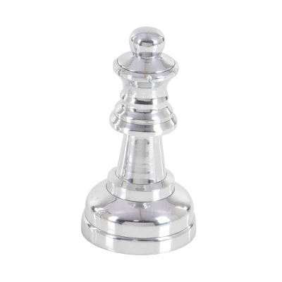 - This features a set of polished glossy metallic silver chess piece table decor pieces