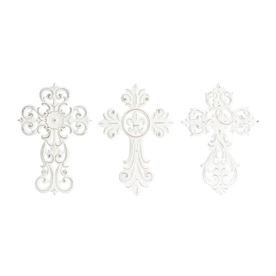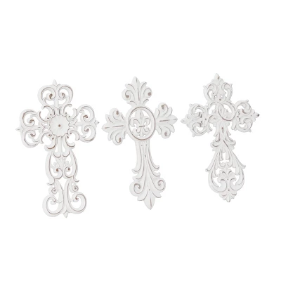 Create an excellent focal point on your walls paired with some cute accent tables, and level up your home with this amazing wall Decor. Hang a cross above a doorframe to add a spiritual touch to your space.. This item ships in 1 carton. Mdf wall decor makes a great gift for any occasion. Can be hung vertically using a hanging hooks; hook, nails and screws not included. Suitable for indoor use only. This item ships fully assembled in one piece. This white colored wall sculptures comes as a set of 3. Traditional style.