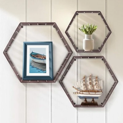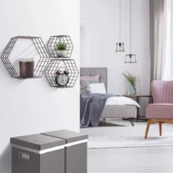 Maximize your space with Sorbus Floating Hexagon Shelves. Whether for succulents or home décor, this floating shelf trio provides the perfect cubby for storage and display. It features a hexagon silhouette in three sizes with a sleek smooth finish. Simply add your favorite knickknacks, photos, or charming collectibles for a dash of personality. The honeycomb shape brings bold style to any rustic, modern, or minimalist home décor. Each hexagon shelf is easy to install and includes mounting hardware for secure installation. Hang individually or group together on the wall to maximize space. This floating storage is the perfect way to decorate and de-clutter whiling taking up zero square feet! Versatile storage and stylish décor for any room in the home. Turn your prized possessions into true conversation pieces! Hang these decorative shelves vertically, staggering near the fireplace, or between two windows for unique wall art. The geometric style beautifully holds small plants and other mood objects. As a decorative storage solution, you’ll enjoy your very own personal touch around the home. Revamp a living room wall, maximize kitchen storage, or display bathroom essentials for a spa-like retreat. The possibilities are endless!