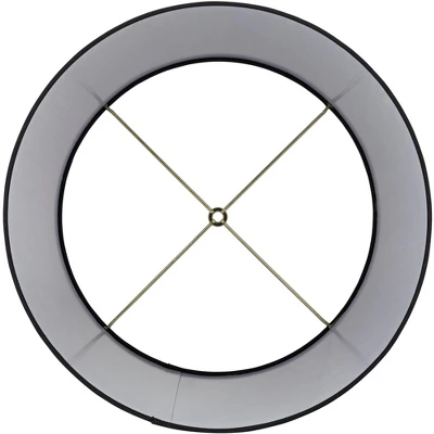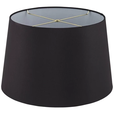 Create cool vibes in a contemporary space by sprucing up a table or floor lamp with this black faux silk hardback tapered drum lamp shade. This lamp shade is covered in black poly and cotton fabric with a white unlined interior and rolled trim. A polished brass finish fitter embellishes the romantic look of this modern shade. Included are a harp and finial in the correct customized size.