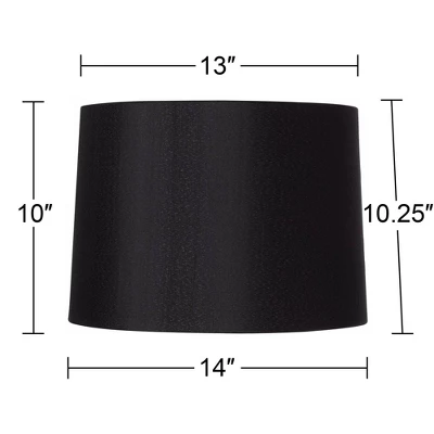 Add a new look to your favorite lamp with this hardback drum shade. From the Springcrest Collection of lamp shades, the design comes in a in black polyester material. The lamp shade is unlined and features a chrome finish spider fitter. The correct size harp and a finial are included free with this shade. The look adds sophistication and elegance to to any decor style.