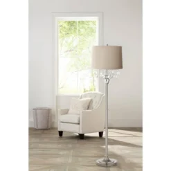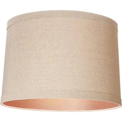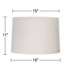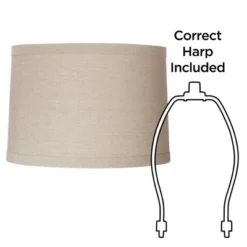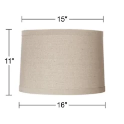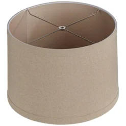 Add a chic, casual element to your home decor with this natural taupe linen blend drum shade. The design features self-trim on the top and bottom and a taupe cotton and poly blend liner.